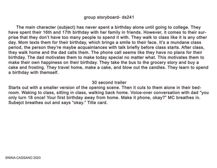 "Happy Birthday" is a short-film created by 5 individuals, including myself, for a film class at Michigan State University. Under constant professor and audience feedback, our group was able to produce a short film based off an initial storyboard and concept. This is that storyboard.